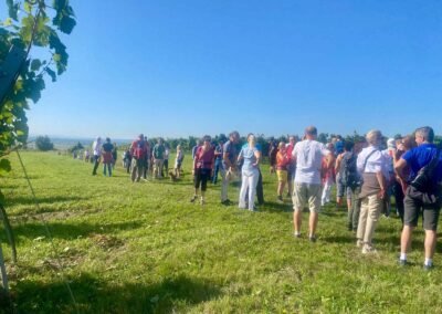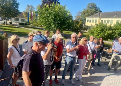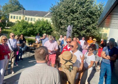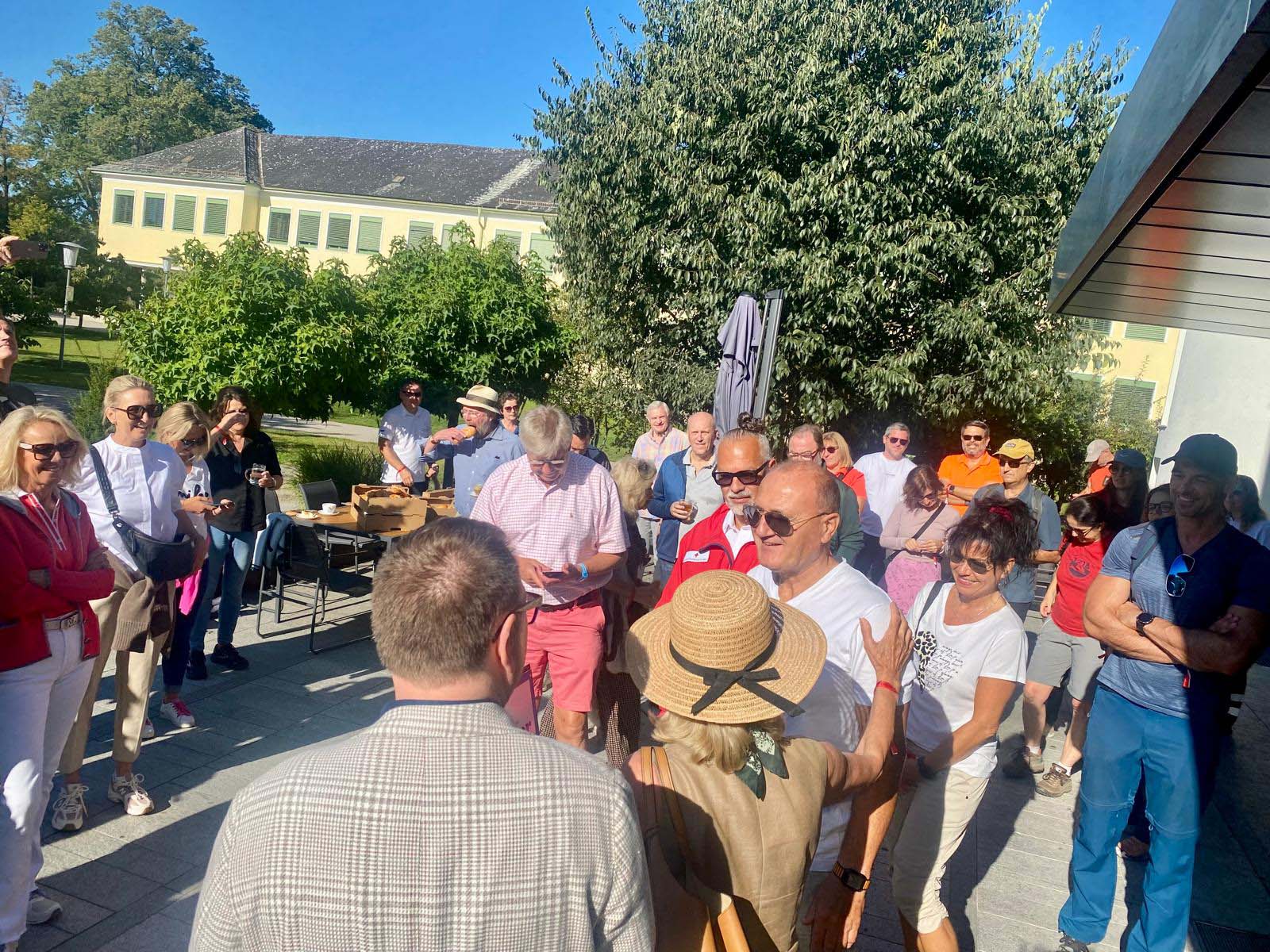 Nach der Begrüßung durch Bürgermeister Franz Aigner sowie den Vereinsvorstand Elisabeth Gürtler, Thomas Gindele, Hans Gasser, Manfred Reichl, Peter Steinbach und Matthias Moncher startete die rund 14 Kilometer lange Wanderung. Die Route führte vom Alchimistenpark über Unterstockstall und den Schlossberg nach Mitterstockstall, wo die Teilnehmer:innen in der Weinmanufaktur Strobl herzlich empfangen wurden. Besonderer Dank gilt Clemens Strobl für seine großzügige Gastfreundschaft, die Einladung zur Mittagsrast und die eindrucksvolle Führung.