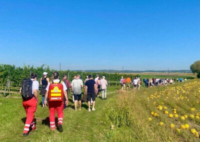 Die zweite Etappe führte die Gruppe über Oberstockstall Richtung Engelmannsbrunn, vorbei an der Hubertuskapelle, zurück nach Kirchberg. Den stimmungsvollen Abschluss bildete eine Weinverkostung wunderbarer Weine aus der Weinmanufaktur Strobl im Alten Winzerkeller, bei der sich auch Werner Kraut, Vizepräsident des Roten Kreuzes, vom Engagement der Teilnehmer:innen überzeugte.